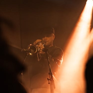 Sonically, the evening felt soft-edged and painterly. Sounds blended into one another with deliberate gentleness, creating a world where borders between instruments were intentionally blurred. Warm keys, brass tones, guitar lines, and rhythmic layers merged into a cohesive whole, making it less about individual performances and more about collective expression. At times, it felt like listening through water — slightly distorted, deeply enveloping, and emotionally magnified.